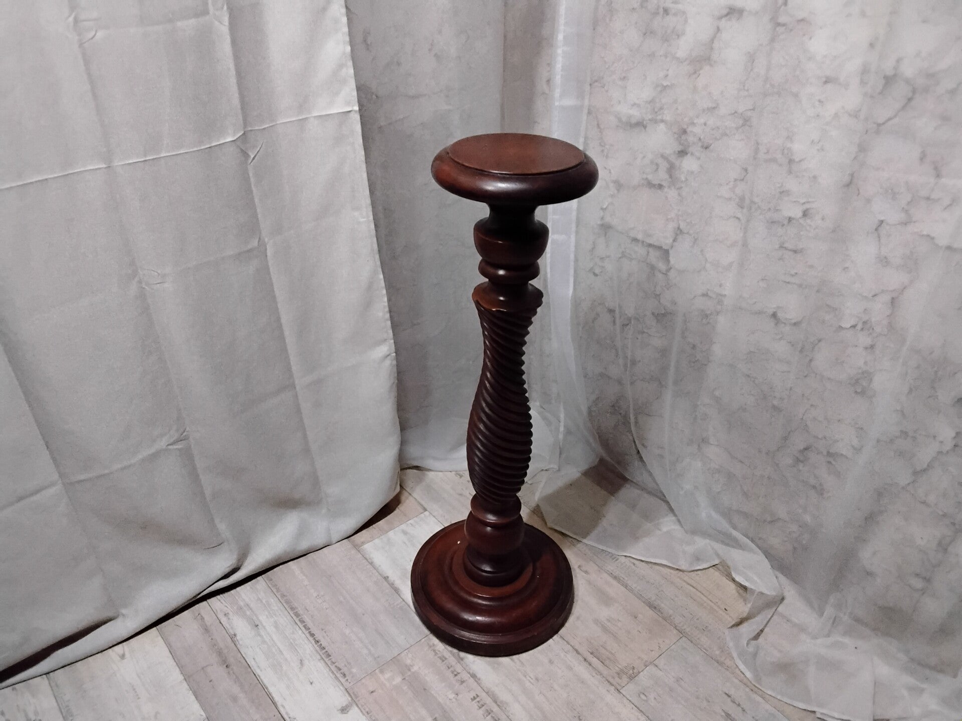 Belle colonne bois joliment sculptée qui peut être installée dans un vestibule surmontée d'un vase ou une statuette par exemple. Hauteur : 95cm